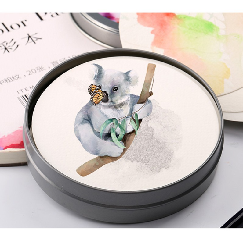 丟勒圓鐵盒水彩紙 直徑10.5公分 24張