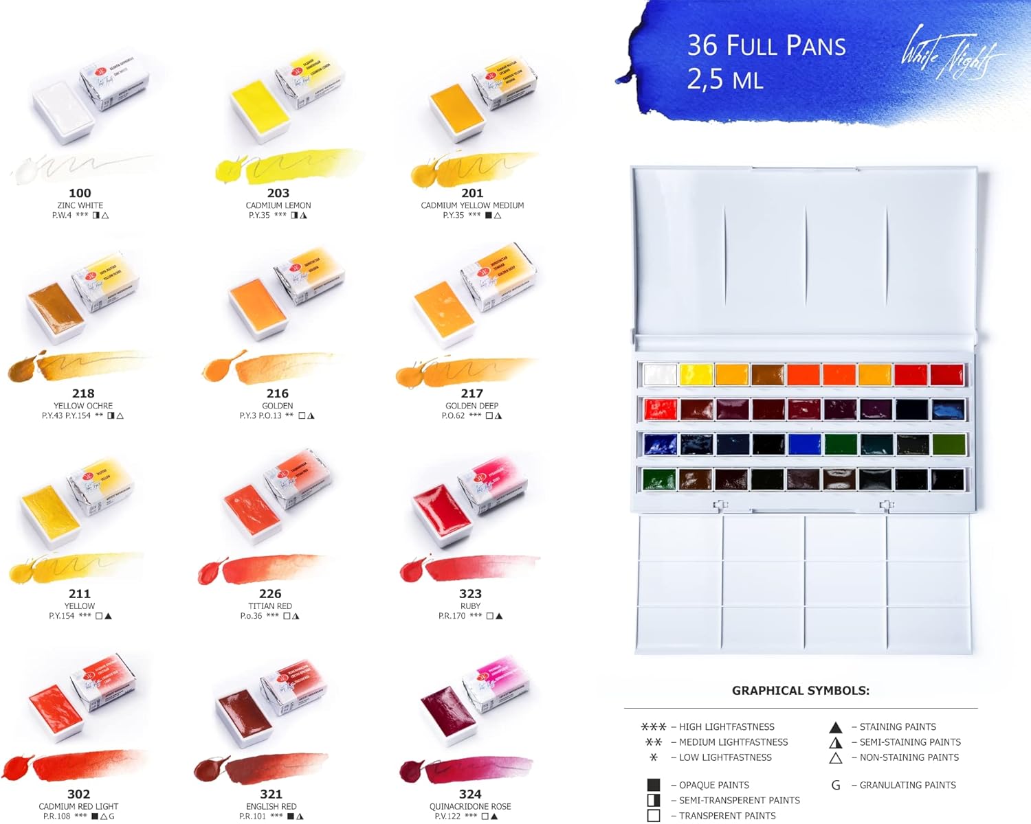 俄羅斯 White Night 白夜全塊塊狀水彩 專家級12色24色36色 【塑盒】白夜水彩顏料