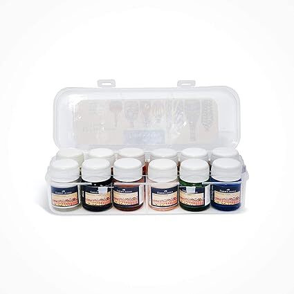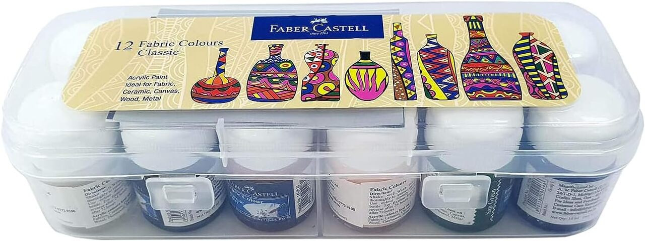 Faber-Castell Fabric Colours 12 色套組提供豐富且柔和的顏色,適合多種材質使用,尤其是布料與工藝創作。使用後顏料快乾且持久,布料保持柔軟,顏色可疊加、混合或用水稀釋創作層次效果,是布料彩繪、手作與創意工藝的理想選擇。