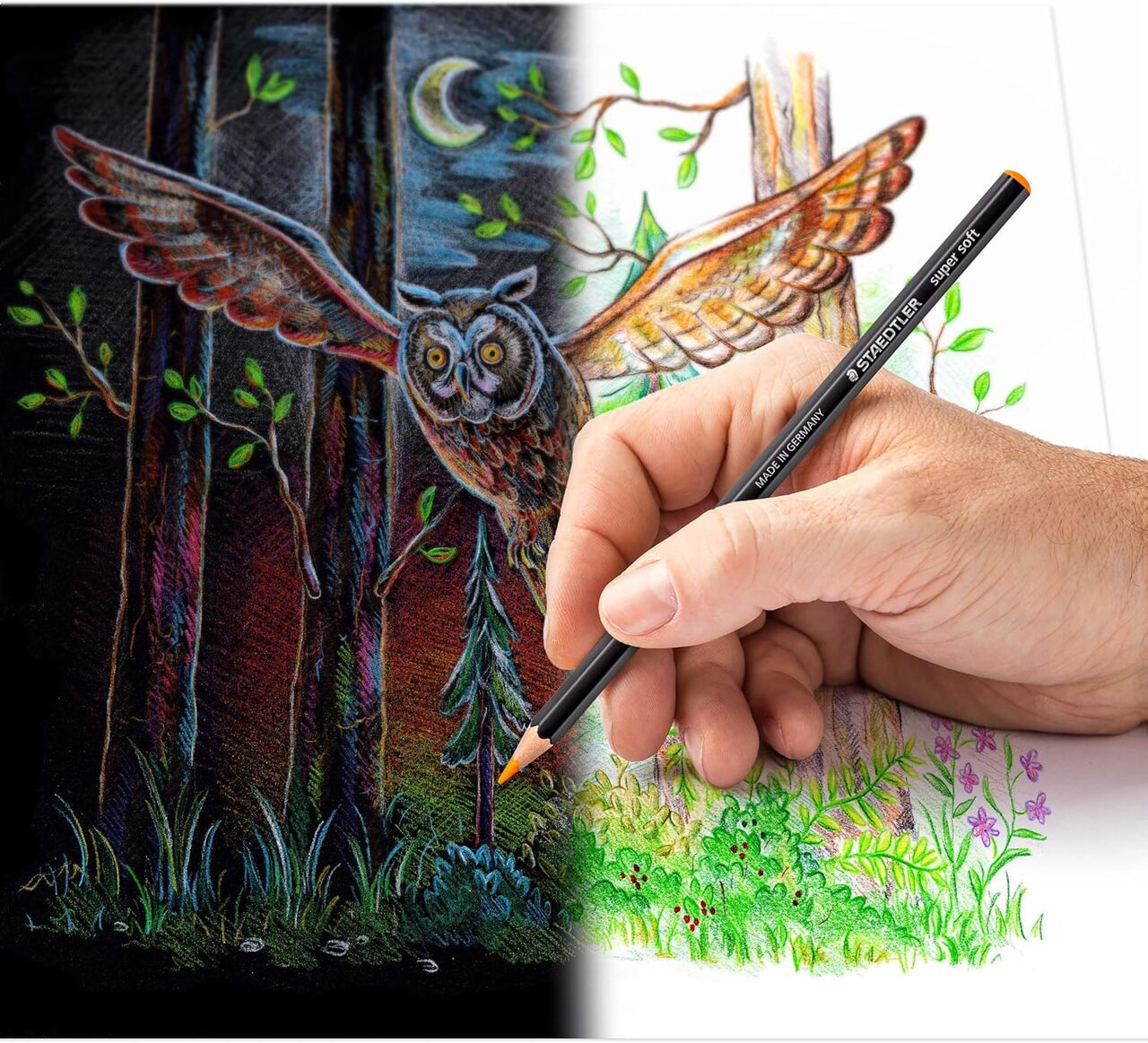 超軟筆芯,顏色鮮明,覆蓋力高,可在白紙及黑紙上呈現鮮豔色彩。