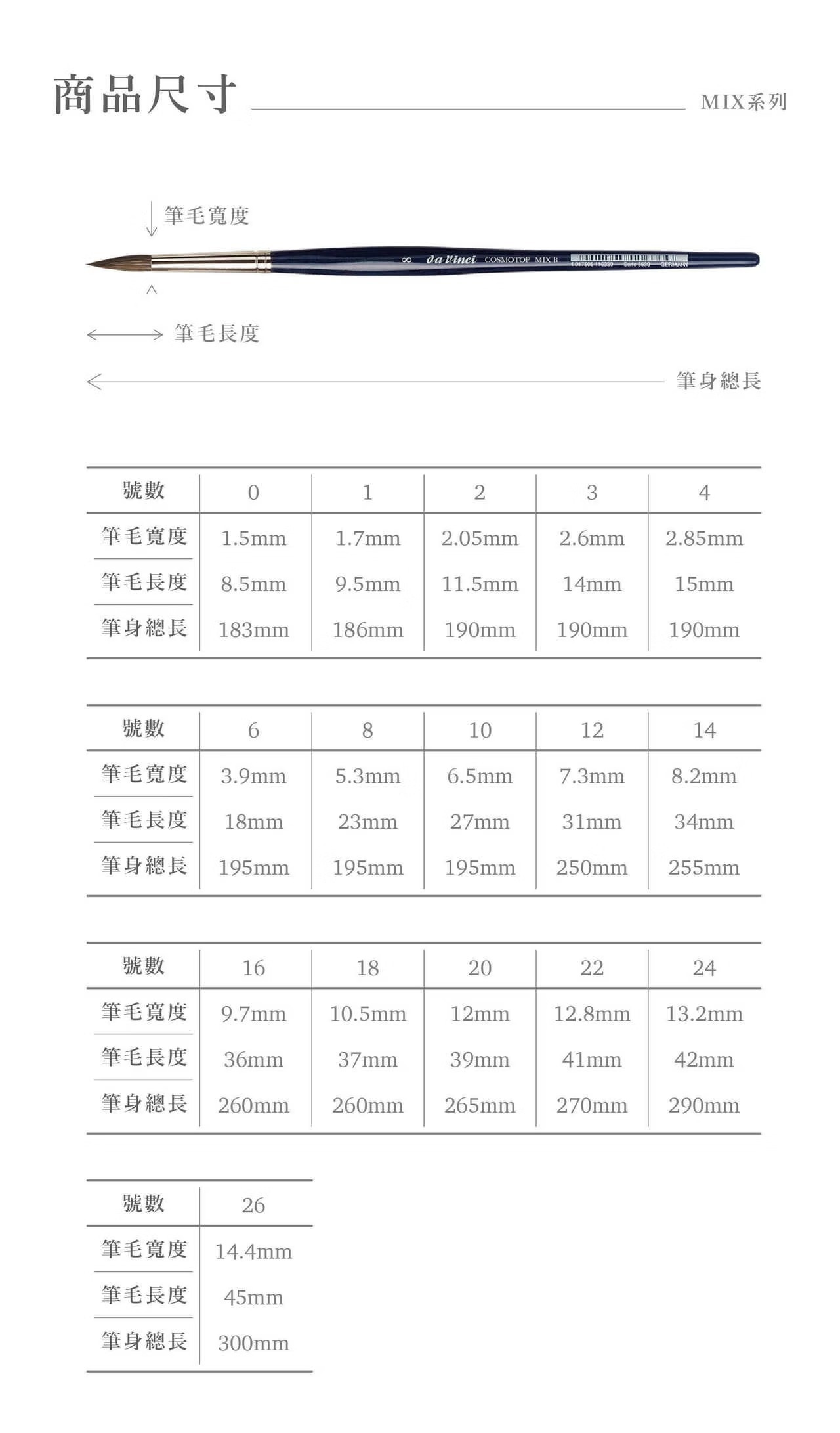 德國Da Vinci 達芬奇 MIX-B 5530 混和動物毛 水彩筆 14~18號