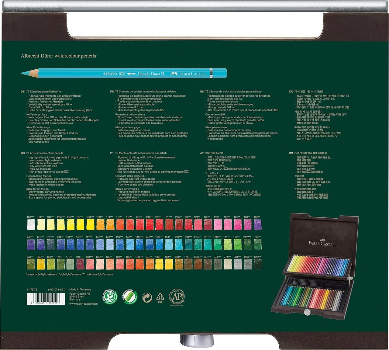 德國FABER-CASTELL輝柏 Artists 專家級 綠盒 水性色鉛筆-36色