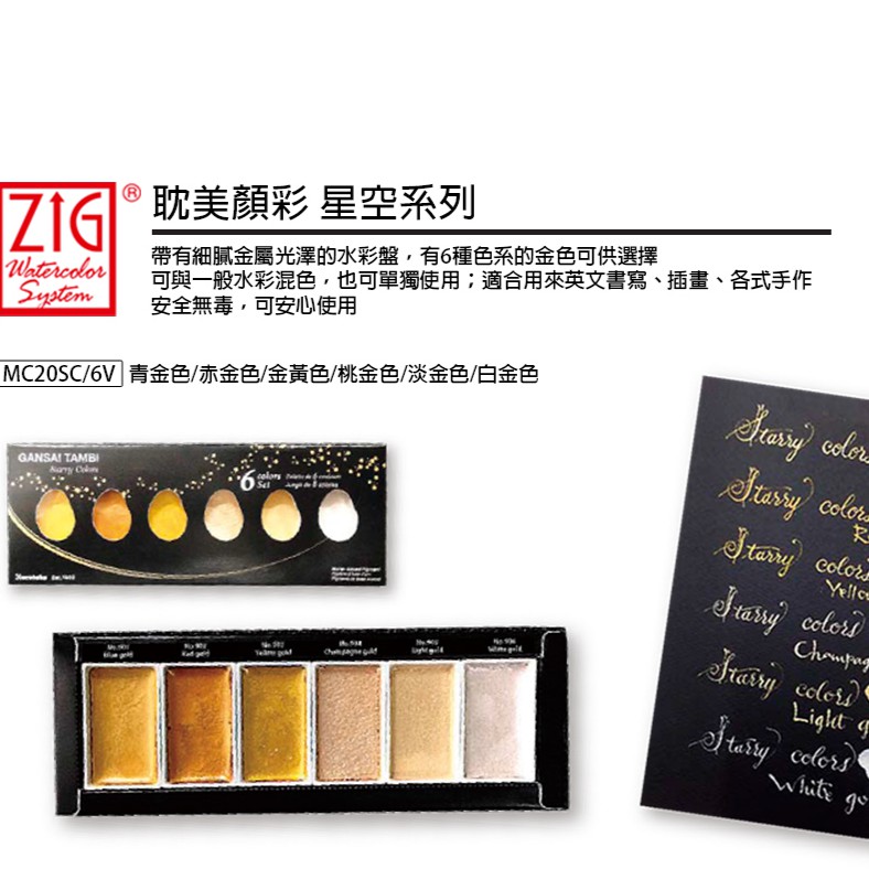 日本 吳竹 ZIG 顏彩耽美 星空系列 6色組 kuretake