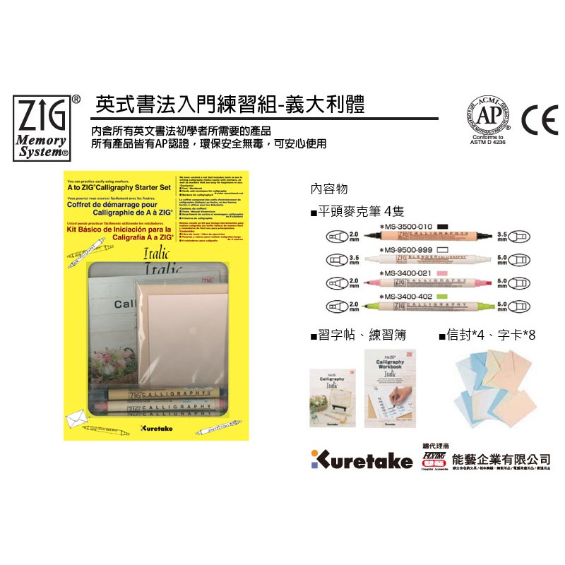日本 吳竹ZIG 英式 書法 入門 練習組 義大利體 MSST-001