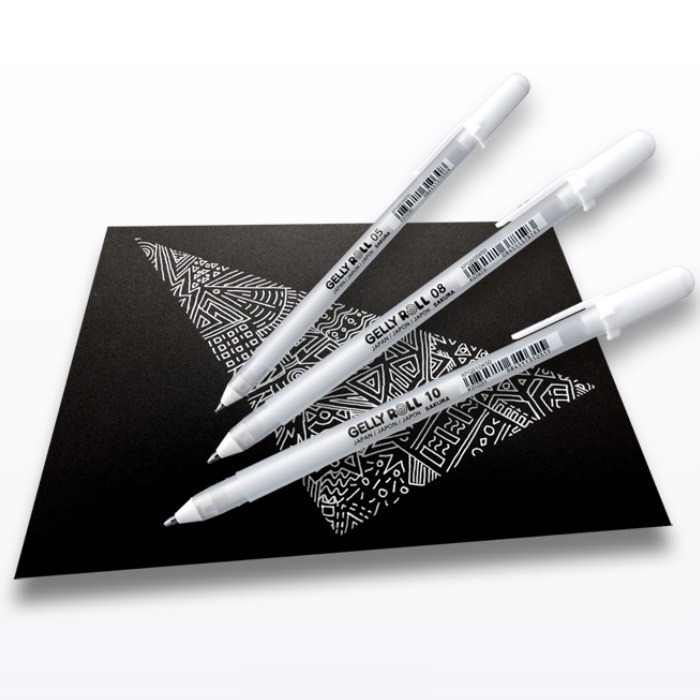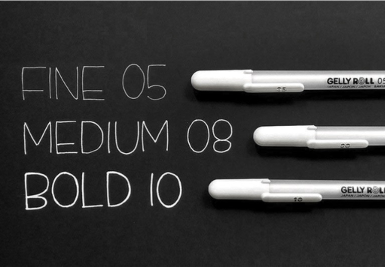 流暢的中性墨水滾珠筆,提供純淨顯色的白色墨水,特別適合深色紙張。