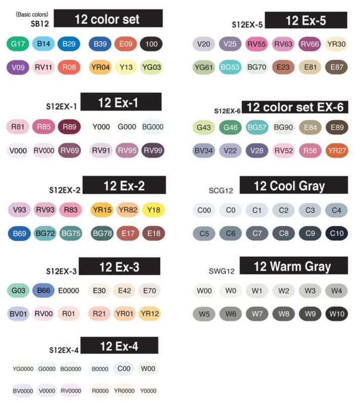 專業 12 色套裝組合,經過色彩調配優化,適合漫畫創作、商業插畫及空間設計繪製。
