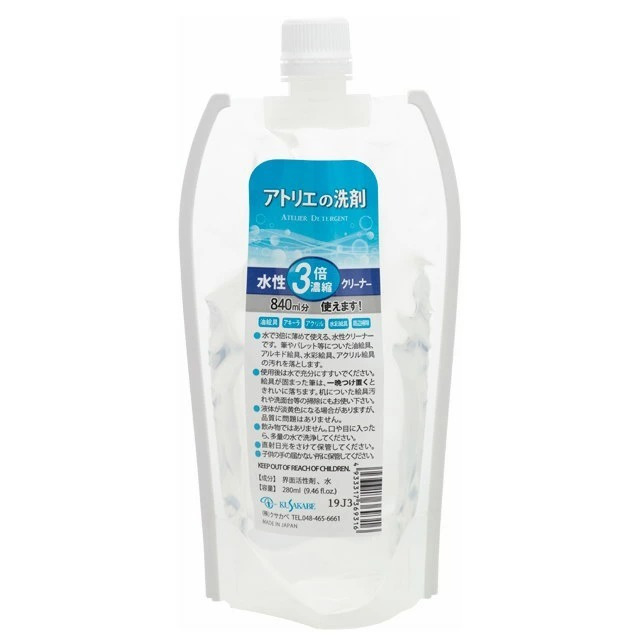 日本クサカベ推出的水性多用途畫材清潔劑,適用於油畫、水彩、壓克力、アキーラ等顏料清潔。