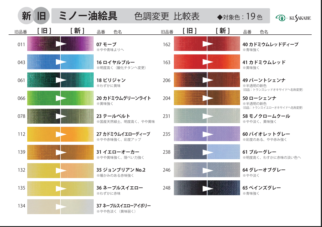 Mino 的名稱源於 1972 年誕生地——岐阜縣的美濃。品牌傳承了舊日下部技術人員自創業以來的經驗與 Know-how,目標是減少非必要的添加劑,回歸「原點」,追求油畫顏料最理想的發色與光澤。