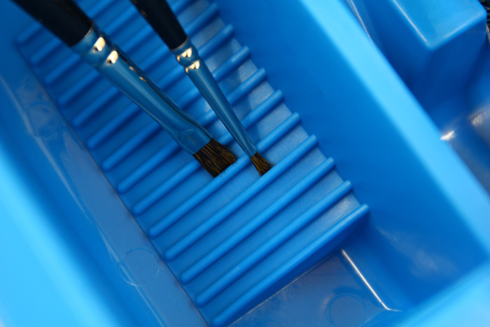 功能:雙槽洗筆、畫筆晾乾架、筆具固定