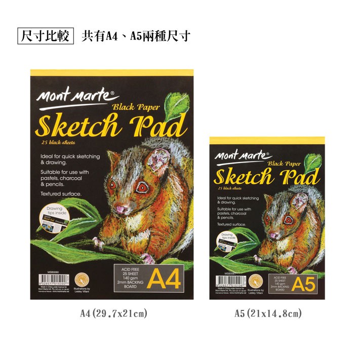 澳洲 Mont Marte 蒙馬特 松鼠 黑卡本 A4 A5 140gsm 25張