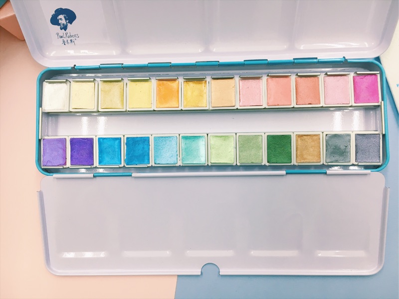 (現貨)魯本斯塊狀水彩鐵盒24色 珠光色系