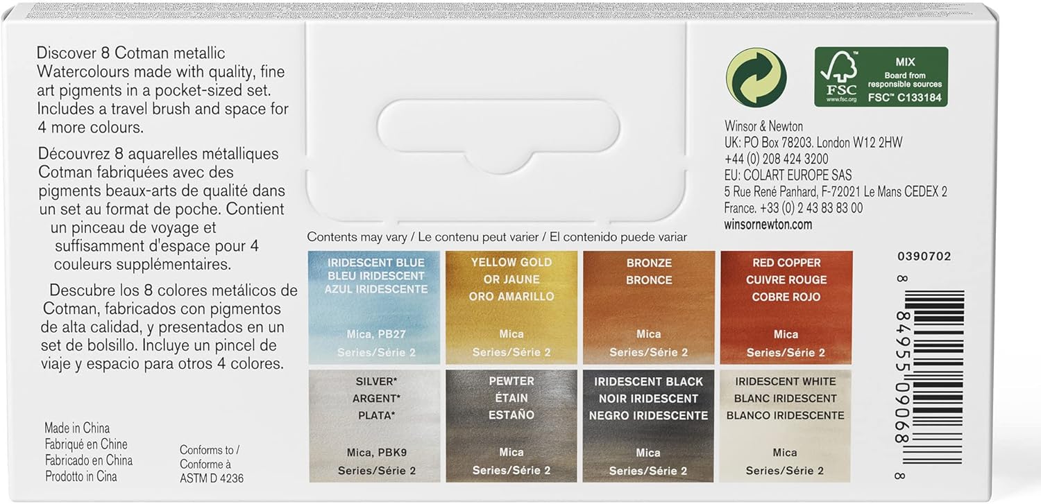 專為旅行與隨身創作設計,Cotman 水彩金屬色套組集合高品質顏料、輕巧攜帶與靈活使用特性,讓藝術家隨時隨地創造閃亮的作品。
