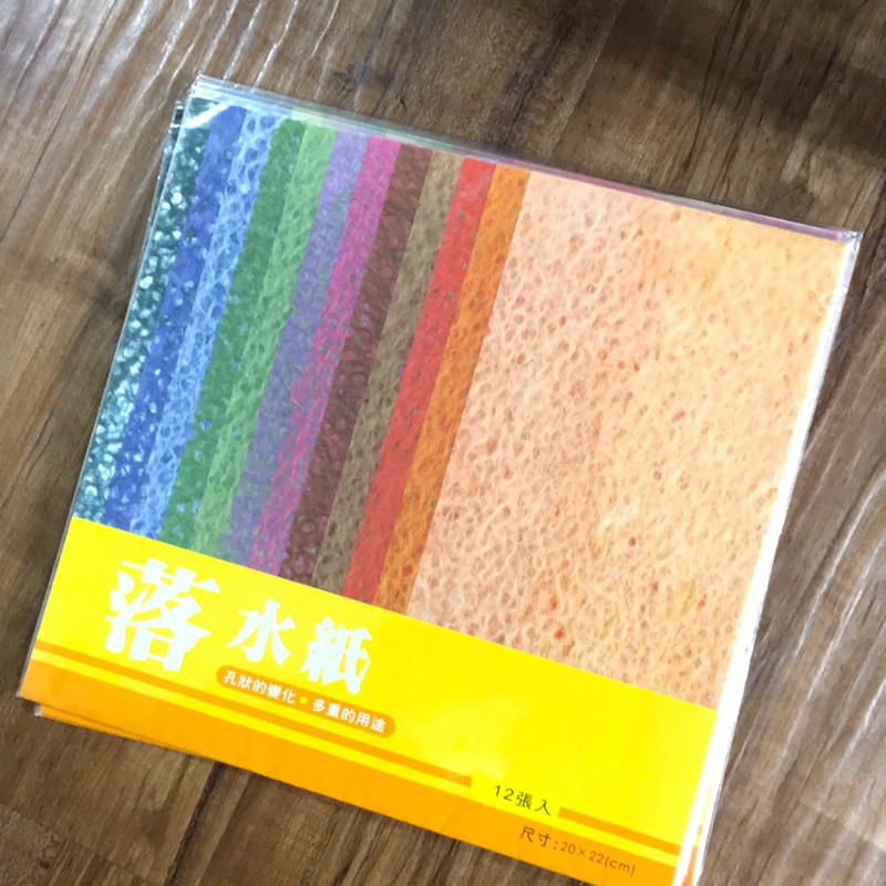 利用傳統落水技術在紙張尚未乾燥時灑水,形成自然、不規則的網狀孔洞紋理,充滿藝術感。
