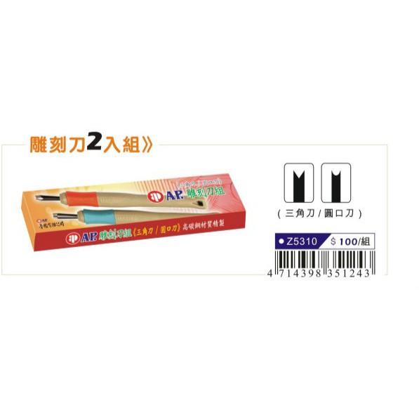 內含木刻與版畫創作最常用的「三角刀」與「丸口刀」兩款基礎刀刃。
