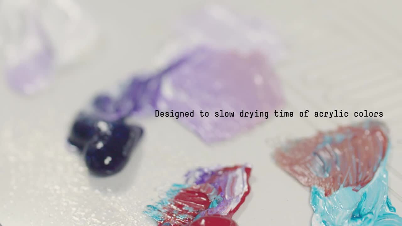 • 流動型壓克力樹脂配方,可有效延緩壓克力顏料乾燥時間,使調色盤上的顏色更持久不結皮。