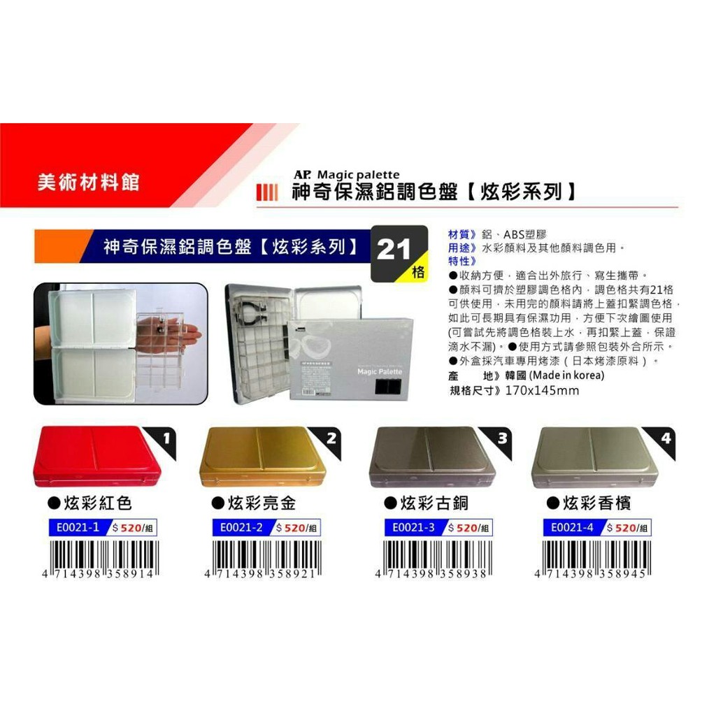 AP 韓國 神奇保濕調色盤 鋁製 E0021 炫彩系列 四色可選