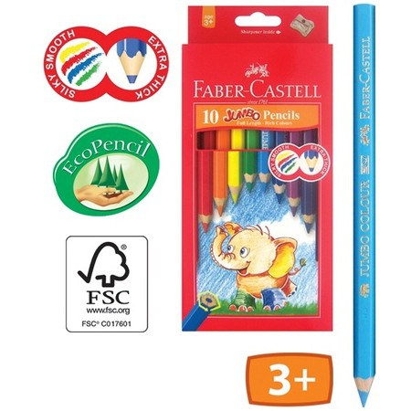 Faber-Castell 輝柏 大六角粗筆蕊 6.0mm 彩色鉛筆 10色附削筆器