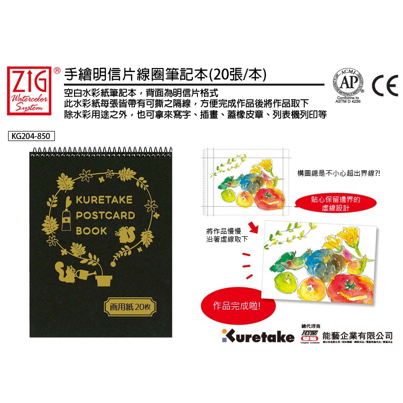 日本 Kuretake 吳竹 手繪明信片線圈筆記本