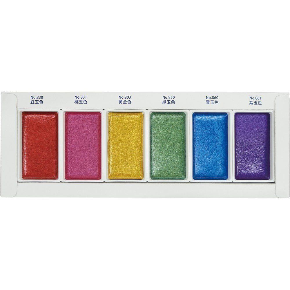 KURETAKE 顏彩眈美 寶石6色 - 日本製 吳竹 沾水筆 國畫 顏料 金銀 金粉 銀粉 墨水代替 塊狀水彩 固體