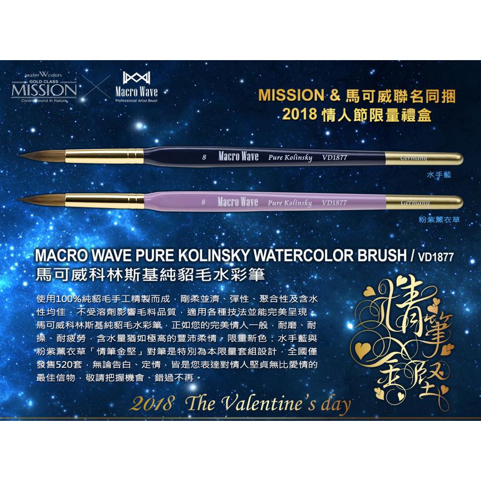 馬可威「情筆金堅」專屬對筆,以 100% 純貂毛手工製作,彈性與柔軟度並存。