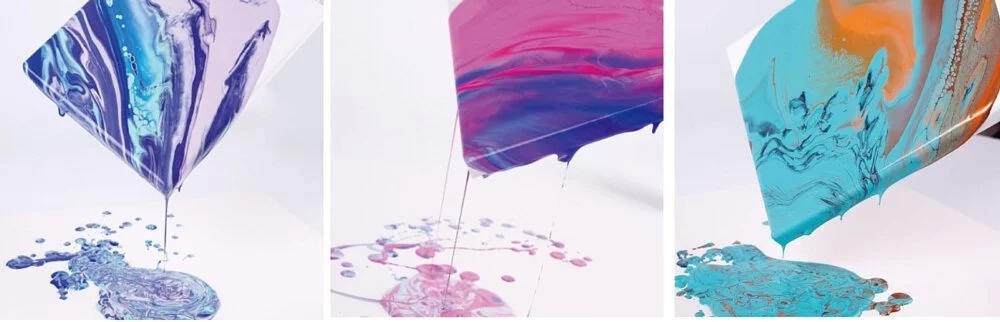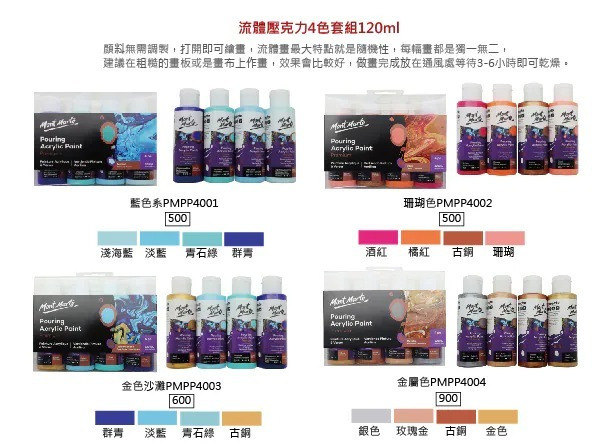 流體畫是近年相當熱門的藝術創作形式,即使沒有繪畫基礎,也能輕鬆完成作品。 Mont Marte 流體壓克力顏料已調整至適合澆淋的濃稠度,無需再額外添加潑灑劑, 只需將顏料倒出或澆淋,即可創作出層次豐富、流動感十足的畫面。