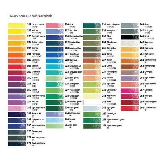 提供120種鮮豔色彩,手感柔和、色彩明亮平穩,色密度高,質感厚重,滿足專家需求。