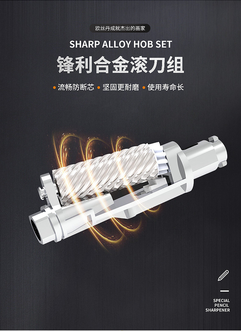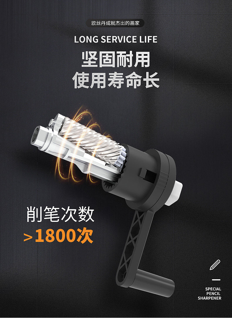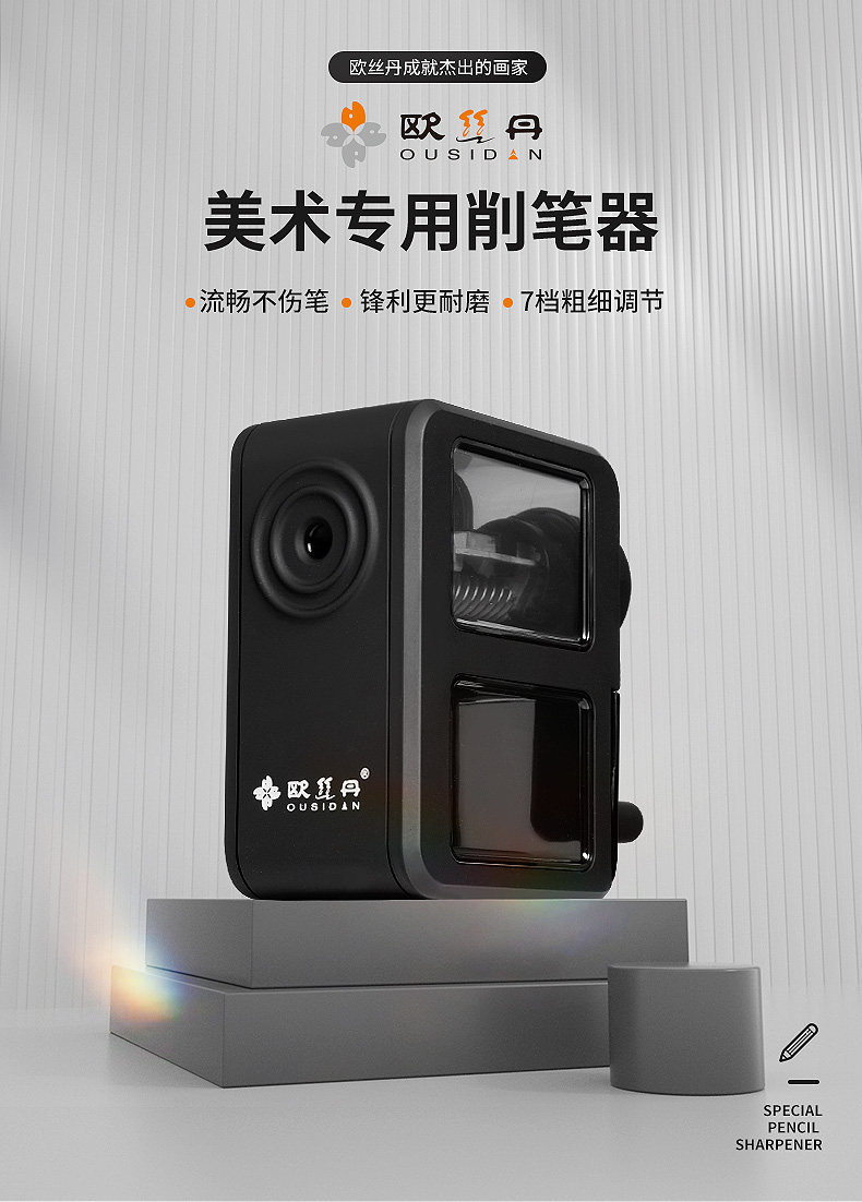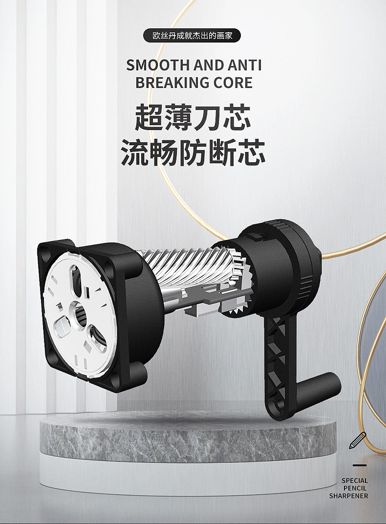 專為美術用途設計:OUSIDAN 專業削筆器採用三爪夾持式結構,削筆均勻不易斷芯,特別適合炭筆、素描筆及各類繪圖鉛筆使用。