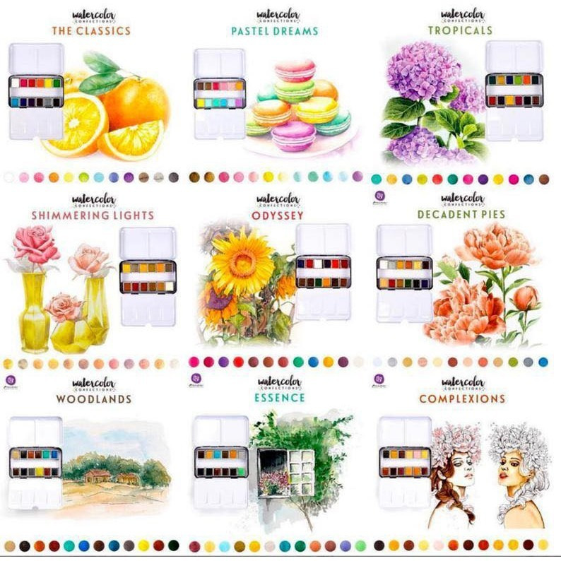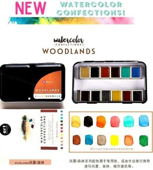 藝術家等級水彩塊,高品質、高顯色度,色彩明亮且飽和。