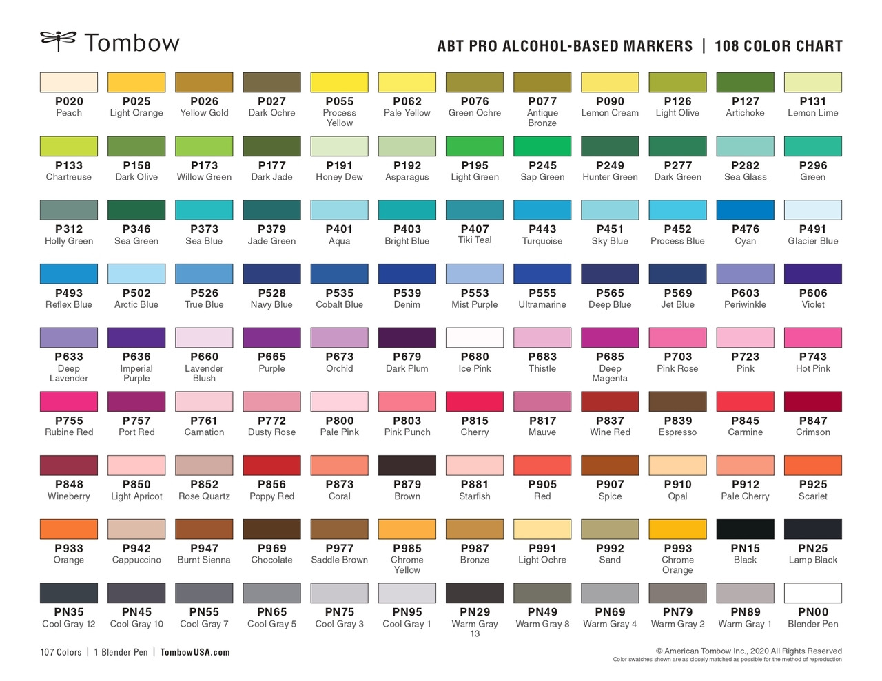 顏色數量:個別色彩,含無色混色筆,共 108 色