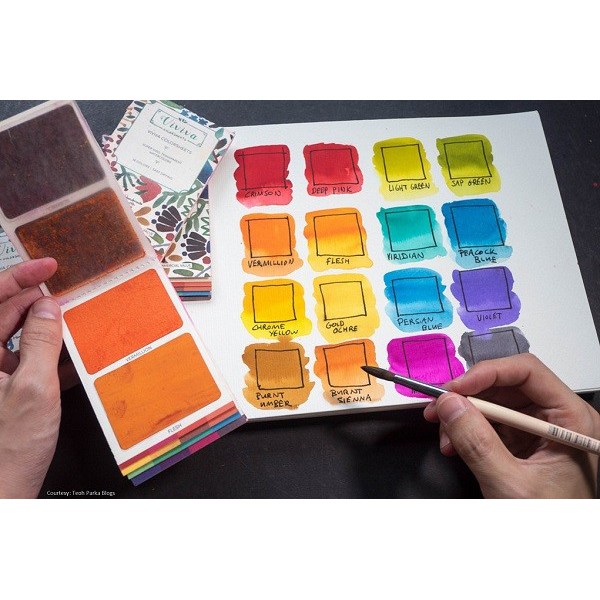 隨身塊狀固態水彩盤,輕薄設計比迷你明信片更小,方便隨身攜帶。