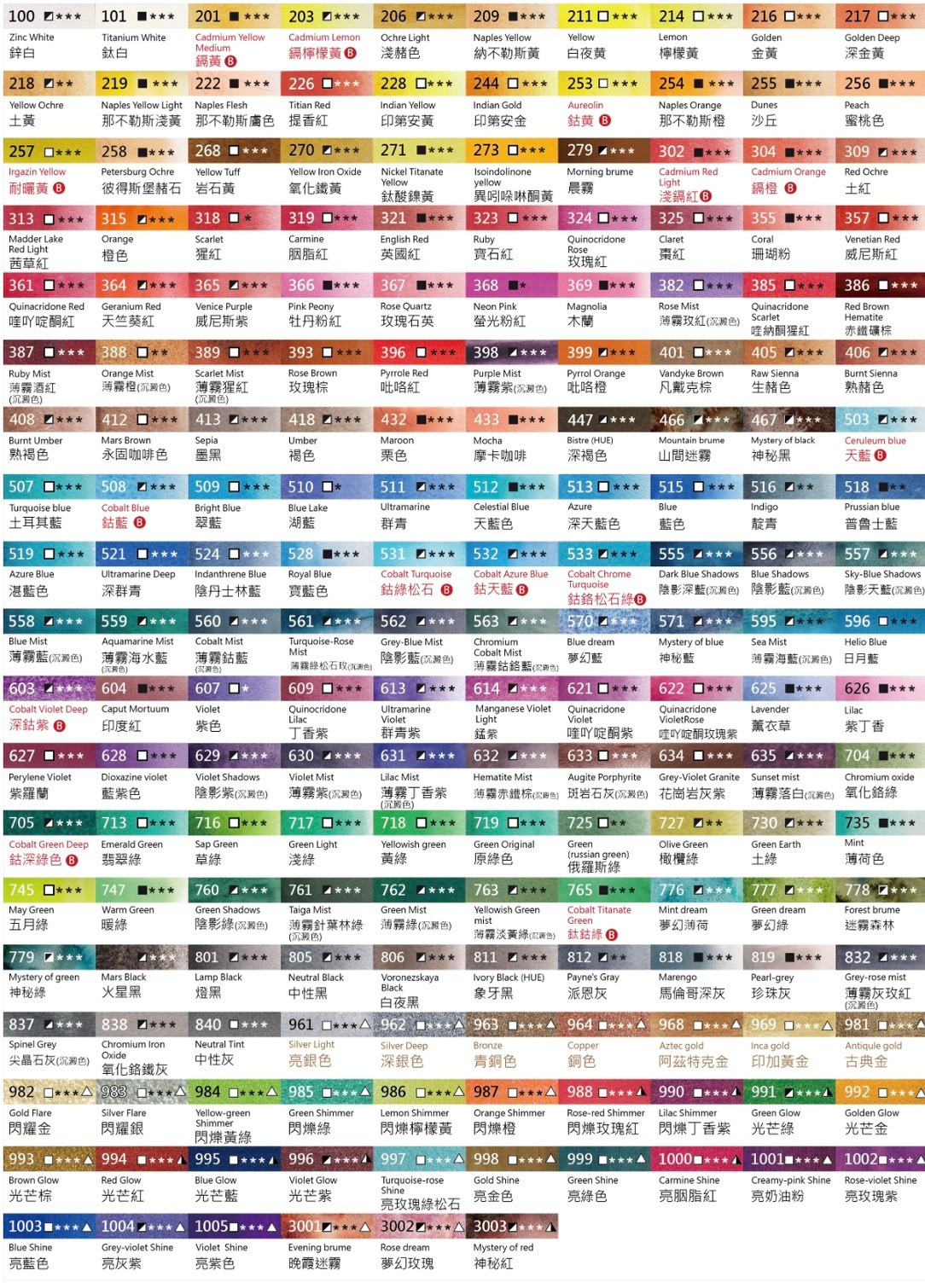 特色:高顏料濃度、透明度佳、耐光性優秀、適用多種水彩技法